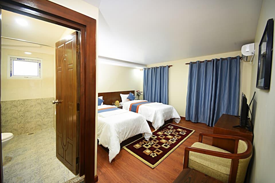 Nestled in the vibrant heart of Kathmandu's Thamel district, Karma Hotel Nepal offers travelers a harmonious blend of comfort and convenience. Its prime location provides easy access to the city's cultural landmarks, bustling markets, and diverse dining options. Guests can choose from a variety of accommodations, including Honeymoon, Deluxe, and Standard rooms, each thoughtfully designed with modern amenities such as air conditioning, complimentary Wi-Fi, and 24-hour hot showers